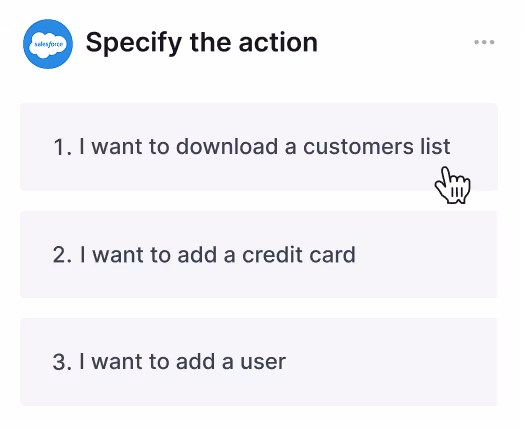 Choose what to do. Pull data, submit a form, complete a flow. Deck takes it from there.